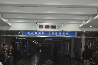 ...Die Rolltreppe führt einen dann direkt seitlich an den Korridor, von dem alle anderen Gebäude abzweigen. Angekommen in unserem Klassenraum haben wir zusammen mit 5 Koreanern täglich Chinesischunterricht. Eine echte Herrausforderung. Die Aussprache ist schwierig. Oft werden wir korrigiert und können die Fehler nicht einmal heraushören. Es gibt vier verschiedene Betonungen, die sich minimal unterscheiden, allerdings immer andere Bedeutungen haben. Das kann schon mal sehr witzig sein...