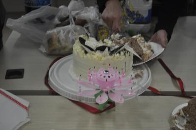...Dann ging es an das Geburtstagslied. Dafür wurde eine Plastikblume angezündet, die darauf anfing Musik abzuspielen und sich nach wenigen Sekunden öffnete und zu einer Blüte mit vielen Kerzen wurde. Echt abgefahren!!!