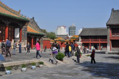...Am Freitag gab es ein leckeres Frühstück mit Bacon und Rührei. Danach machten wir uns auf zum Kaiserpalast in Shenyang. Es ähnelt stark der Verbotenen Stadt in Beijing, allerdings im Kleinformat. Jedoch ist es die ältere originale Anlage. Shenyang war nämlich auch einmal Chinas Hauptstadt. Einige traditionelle Dächer sind neben neuen Gebäuden teilweise auch noch zu finden. Eine wirklich interessante Mischung...