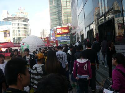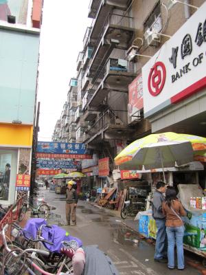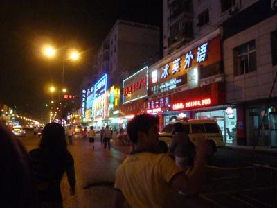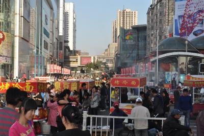 ...Abschließend ging es durch die Einkaufsstraße "Zhong Jie", die an diesem Tag noch voller war. Die Fußgängerzone war so überfüllt, dass die Straße spontan von Essenständen belagert wurde...
