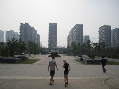...In so einem Menschenregal sind auch wir untergebracht. Direkt vor unserer Tür siehts dann so aus. Es gibt mehr Grünflächen als ich erwartet hatte...