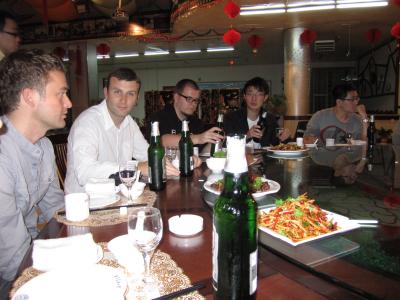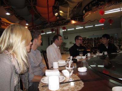 ...Abends wurde wir vom Tianzhu Büro dann in die Mensa eingeladen. Hört sich erstmal abschreckend an, im dritten Stock angekommen waren wir dann alle sehr überrascht. Es wurde mal wieder ordentlich aufgetischt. Die Drehplatte in der Mitte war diesmal so riesig, dass sie automatisch bedient werden musste...