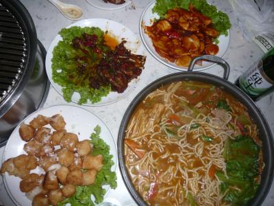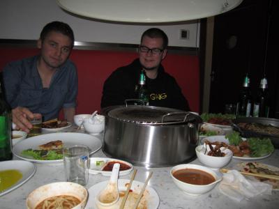 ... So dann waren wir gestern mal wieder zur Abwechslung Essen. Diesmal nicht für 3€, sondern ganz nobel für 6€. Der Service war dementsprechend. Es gab HotPot. Eine Art Fondue. Anstelle von Öl oder Brühe wird Fleisch und Gemüse in einer Suppe gegart. Alles direkt am eigenen Tisch...