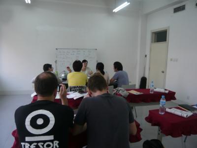 Nachdem wir ja am Mittwochabend für die Chinesen gekocht haben und sie das Essen mehr oder weniger gemocht haben, mussten wir am Donnerstag gleich wieder pünktlich um 8.30 zum Chinesischunterricht. Insgesamt haben wir drei verschiedene Sprachlehrerinnen. Da eine von ihnen trotz gutem Englisch nur Chinesisch redet, mussten wir ihren Unterricht leider aufgeben. Gunnar versucht weiter sein Bestes in ihren Chinesischstunden. Und siehe da, kaum sind wir nicht mehr da, kann sie auch wieder Englisch. Naja, die ganzen Schriftzeichen, von denen alle meinen, dass auch wir Deutschen sie können würden, sind einfach zu anstrengend. Das lernen wir echt NIE!!!...
