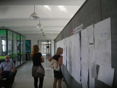 ...Bisher hatten wir schon das Gefühl hier nur zum Essen und Chinesisch lernen da zu sein. Aber nein, eigentlich wollten wir ja Architektur studieren. Und dann gestern, am Dienstag bekamen wir die Studios gezeigt. So arbeiten hier die chinesischen Studenten...