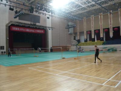 ...Nachmittags haben Lisa und ich uns dann mit den Chinesen zum Sport verabredet. Die haben uns beim Badminton gleich mal schön vorgeführt. Das größte Problem war allerdings den Eingang der Sporthalle zu finden. Ein riesiges Gebäude mit Schwimmhalle und und und, nur schien nirgendwo ein Eingang zu sein...