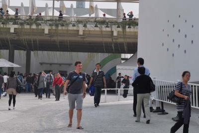 ...Nach gründlichen Sicherheitskontrollen endlich auf dem Gelände, wussten wir zuerst gar nicht recht wohin. Unsere Taktik: Erst zu den europäischen Pavillons, da sowieso keine Chance bestand in den chinesischen reinzukommen. Die durchschnittliche Wartezeit betrug um die 4 Stunden. Zu diesem Zeitpunkt glaubten wir noch, dass dieser Tag ein etwas weniger gut besuchter wird...